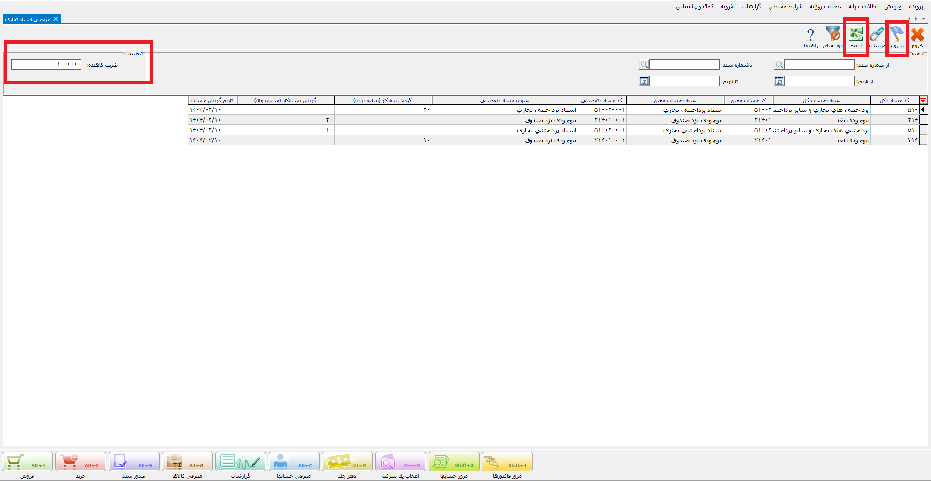 نکته: برای استفاده از منوی خروجی اسناد تجاری باید حداقل نسخه 9 حسابگر را داشته باشید و برنامه خود را به بیلد 798 بروزرسانی نمایید. برای تهیه بیلد 798 به پورتال سایت شایگان سیستم مراجعه نمایید.