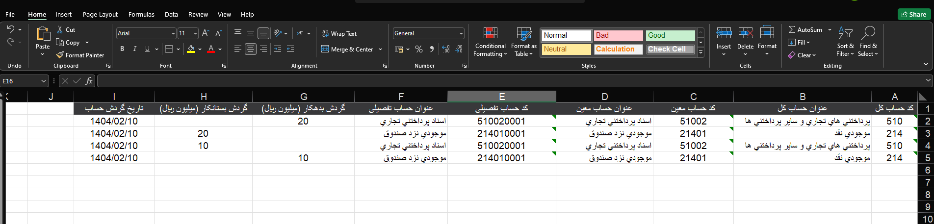 • نوع دفتر (دفتر روزنامه، دفتر کل و غیره)