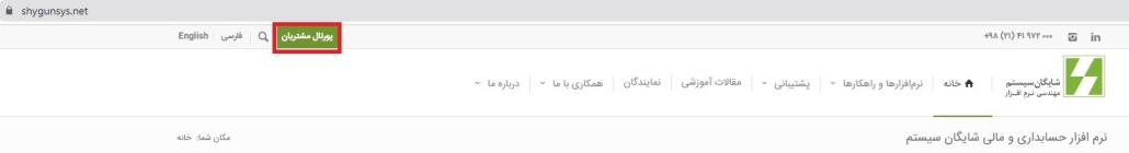 جهت ارسال تیکت از طریق سایت ابتدا وارد وب سایت شرکت شایگان سیستم به نشانی www.shygunsys.net شوید و بر روی منوی پورتال مشتریان کلیک نمایید.