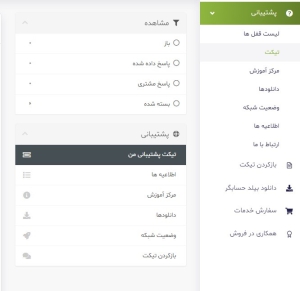 جهت مشاهده و بررسی تیکت های ارسالی می توانید از منوی پشتیبانی گزینه تیکت را انتخاب نمایید.