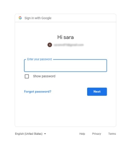 بعد از انتخاب حساب کاربری GMAIL در مرحله بعد، رمز عبور حساب انتخاب شده را وارد سپس بر روی دکمه NEXT کلیک نمایید.