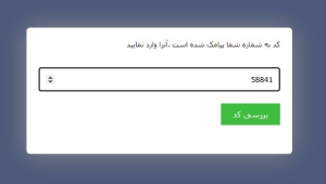 در مرحله بعد کد ارسال شده به شماره همراه خود را وارد سپس بر روی دکمه بررسی کد کلیک نمایید.