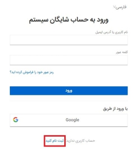 برای ثبت نام از طریق حساب کاربری Gmail بر روی دکمه Google کلیک نمایید
