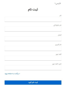 در صفحه باز شده در قسمت نام و نام خانوادگی، نام و نام خانوادگی خود را وارد کنید. در قسمت ایمیل، آدرس ایمیل خود را وارد نمایید. در قسمت نام کاربری، نام کاربری مورد نظر را وارد نمایید. در قسمت کلمه عبور، کلمه عبور برای ورود به وب سایت را نیز وارد نمایید. در قسمت تایید کلمه عبور، کلمه عبور را مجددا وارد نمایید. بعد از تعیین موارد بر روی دکمه ثبت نام کنید، کلیک نمایید.